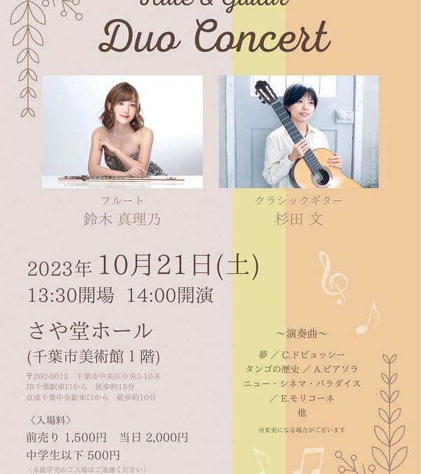 出演者: 鈴木真理乃(フルート)、杉田文(ギター)