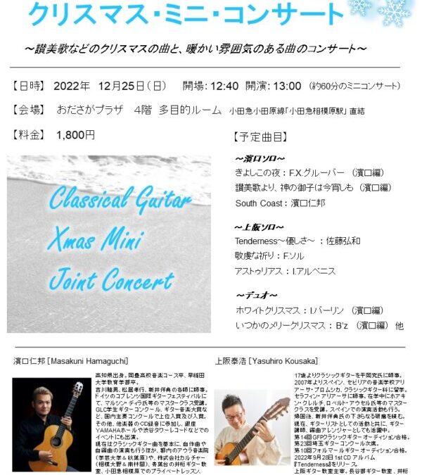 クリスマスの音楽と暖かい雰囲気の曲を予定しています。
