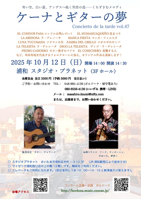 | イベント名 | ケーナとギターの夢 -秋のコンサート- @浦和 vol.47 |