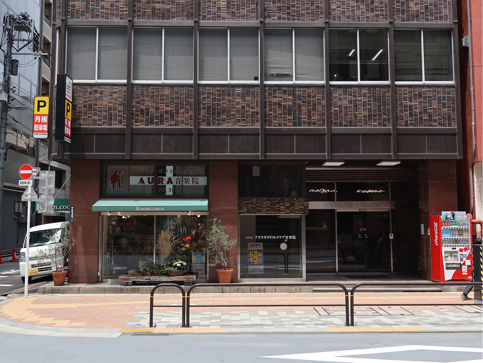 YKKビルの手前で右に曲がり、ビルに沿って少し進むと左手に1階が花屋のビルがあり、その2階です。