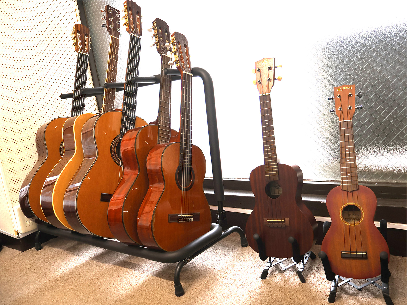 - 楽器レンタルあり:クラシックギター、フラメンコギター、アコースティックギター、エレキギター、ウクレレ