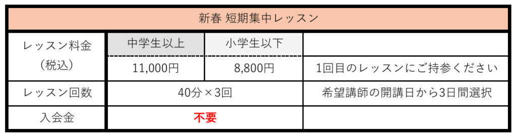 ※期間中は「新春 短期集中レッスン」と「無料体験レッスン」の両方を同講師で受講することは出来ません
